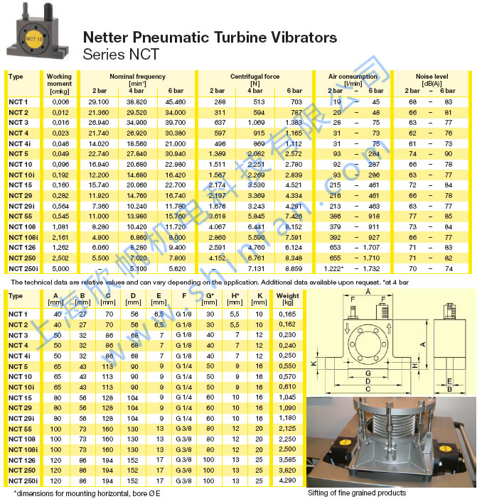 氣動渦輪振動器NCT1,NCT2,NCT3,NCT4,NCT5,NCT10,NCT15,NCT29,NCT55,NCT108,NCT126,NCT250