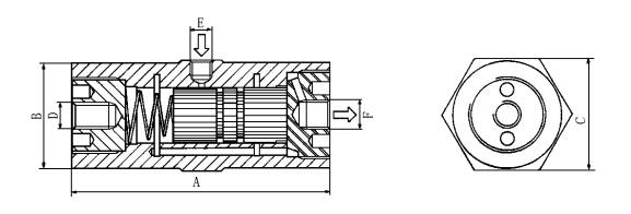 | 型號 | A | B | C | D | E* | F* | 殼體重量 | 活塞重量 | 總重量 | ||||||